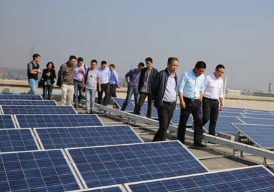 江小軍副主任一行在項目負責人的帶領下,到東華集團新區生產基地樓頂現場查看了多晶硅太陽能板的安裝、運行情況和低壓配電室并網柜的運行情況。表示東華集團作為余杭經濟技術開發區第一家試點光伏發電項目的企業,項目進展順利,運行狀態良好,后續開發區將有3家大企業跟進本項目。